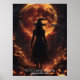 Au cœur de la nuit d'Halloween, une sorcière solitaire se dresse devant une lune de récolte en feu, entourée de citrouilles sinistres et d'arbres qui murmurent. "L'Heure de Sorcellerie" évoque la beauté glaçante du moment le plus hanté d'octobre — un mélange parfait de ténèbres, de mystère et de magie inquiétante.