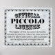 Licence officielle Piccolo. Il y a de nombreuses activités impliquant divers équipements, comme l'utilisation d'une automobile, d'un avion, etc., qui nécessitent une formation spécialisée et des licences. Faire de la musique est quelque chose qui nécessite généralement une formation : leçons, pratique et répétitions. Ne devrait-on pas exiger des futurs musiciens qu'ils reçoivent une licence pour exploiter l'équipement, c'est-à-dire leur instrument de musique?