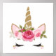 Affiche licorne dorée fleurs mignonne tendance