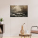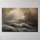 Seascape with powerful waves and sunbeams breaking through dramatic clouds. Sepia tones create a melancholic and inspiring atmosphere. Perfect for decoration, posters and wall art. A work that conveys strength, hope and the untamed beauty of nature in its wildest form.