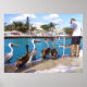 pélicans attendant les débris d'une pêche de pêcheur, Boynton Beach, Floride
