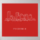 Ce dessin présente une esquisse dessinée à la main de la ligne d'horizon de Phoenix sur un arrière - plan de couleur rouille.