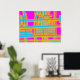 "Lines of Communication" est un design abstrait coloré dans les tons magenta, bleu et orange.