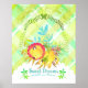 Illustration mignonne de lion endormi avec motif de feuillage. "Rêves doux" peut être personnalisé.
