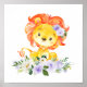 Affiche Lion, Safari, Fleurs pourpres, Neutre Genre