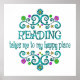 Montrez votre amour pour la lecture avec ce design amusant avec des fioritures, des boules, des étoiles et des fleurs et les mots - La lecture m'emmène à mon endroit heureux.