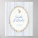 The sign showcases a soft blue striped background, providing a serene and inviting canvas that evokes the freshness of springtime. At the heart of the design is a hand-painted oval frame, elegantly adorned with an illustration of an adorable duckling. This playful and sweet imagery adds a sense of joy and anticipation to your celebration.