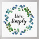 Cette affiche moderne avec des mots d'encouragement, "Live Simply", qui peut être changée ou customisée avec vos propres mots d'encouragement, présente une verdure à l'aquarelle de l'eucalyptus.