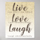 Live Love Laugh Girly Gold Parties scintillant Typographie Poster Motivationnel. Pour d'autres couleurs et des phrases contactez designer.