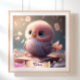 Affiche Livre de l'art personnalisé Chouette bébé rose ois