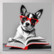 Photo en noir et blanc d'un chien Lire une lecture avec un éclat de couleur cadre en verre rouge une couverture de livre