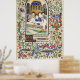 L'une des seize miniatures des ateliers du Maître Lucon et du Maître du Duc de Bedford, dans des cadres voûtés bleus, roses et dorés, certains avec coussinet. Chaque miniature avec une bordure d'acanthus somptueuse incorporant des bras. Collection générale, Beinecke Rare Book and Manuscript Library, Yale University.