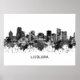 Skyline noir et blanc de Ljubljana, capitale de la Slovénie et plus grande ville