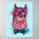 Ce design présente un joli portrait d'aquarelle d'un lama en aquarelles rose et bleu.