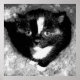 Ce mignon chaton entra dans les écuries de mon mari et finit par y rester. J’ai numériquement modifié l’image pour qu’elle ressemble à un portrait en gros plan, noir et blanc, d’un chaton tuxedo, capturé dans un moment de curiosité tranquille. Les grands yeux réfléchissants du chaton regardent attentivement, attirant l'attention sur le contraste frappant entre sa fourrure foncée et ses marques blanches. Des textures douces entourent le chaton, rehaussant le sentiment de chaleur et de solitude, tandis que la palette monochromatique ajoute une couche de mystère artistique à la composition.