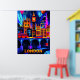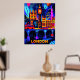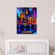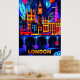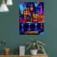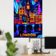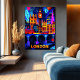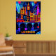 Découvrez l'atmosphère électrique de Londres dans cette illustration géométrique saisissante, qui présente des sites emblématiques comme Big Ben, la ville animée et les bus à impériale rouge incontournables. Illuminée par des couleurs néons audacieuses et des contrastes spectaculaires, cette oeuvre reflète parfaitement l'atmosphère animée de la ville et son charme intemporel. Idéal pour les amateurs de style urbain, de voyages et d'espaces intérieurs modernes.