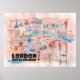 Affiche Londres Royaume-Uni Carte illustrée avec des monum