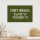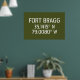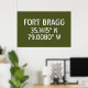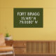 Coordonnées de la carte de latitude et de longitude pour Fort Bragg, près de Fayetteville, Caroline du Nord Police blanche de style Sercil sur arrière - plan vert de l'Armée.