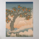 Japan Orange arbre dans la brume belle impression dans un style vintage antique.