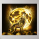 Loup éclair doré avec lune dorée.