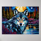 Affiche Loup gris dans le regard en verre tendu de la forê