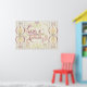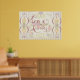 Œuvre murale avec une interprétation fantaisiste de notre thème Love Anyway dans des nuances de rose et de rouge avec des embellissements audacieux, des rayures et des fleurs. TEXTE : "Love Anyway"