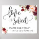 Affiche Love is Sweet panneau de table de mariage marsala