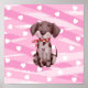 AFFICHE "LOVE PUPPY" AUX COEURS ROSE ET BLANC