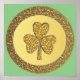 Cette affiche impressionnante présente une image graphique d'une pièce d'or avec deux nuances d'or. Le cercle extérieur a une texture rugueuse. À l'intérieur du cercle intérieur de la pièce se trouve un shamrock doré texturé composé de 3 feuilles et d'une tige.