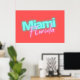 Design typographique moderne et coloré caractéristiques "Miami Florida" en aqua et texte de néon rose sur saumon / arrière - plan de corail