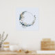 Affiche Lune de croissant bleu avec fleurs blanches
