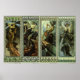 Reproduction du tableau de 1902 d'Alphonse Mucha, Moon and Stars, quatre panneaux décoratifs.