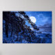 Affiche Lune sur le sapin enneigé et la côte de la mer la