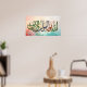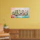 The script shines with metallic tones of gold, emerald green, and deep sapphire blue, elegantly floating over a stunning abstract background of soft oil-painted textures. This premium artwork is perfect for modern Muslim homes, prayer rooms, or as a sophisticated gift for housewarmings, weddings, and Eid celebrations."