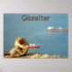 Macaque de Barbarie au sommet du rocher de Gibraltar, avec la baie de Gibraltar et la navigation en arrière-plan