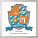 Bouclier de style Chevalier lettre monogramme M affiche de nom d'art parfait pour une chambre à coucher ou salle de jeux pour garçons dans les tons orange, aqua bleu turquoise blanc et gris. Personnalisez avec le nom et le nom de votre enfant signifiant une touche personnalisée à la chambre ou à la crèche de votre enfant, cet exemple est pour le nom Madigan Little dog. Une tour de force et de lumière. Poster imprimé idéal pour un cadeau à un nouveau bébé, pour un baptême, un nom de bébé ou un cadeau de baby shower. Dessin graphique unique, avec un chien, une couronne, une étoile et la lettre M en armoiries de Sarah Trett. www.sarahtrett.com pour www.mylittleeden.com