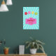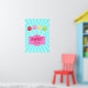 Poster graphique patiné coloré imprimé avec des bonbons de lollipop couleur pastel rétro sur les rayons bleu aqua