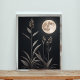 Cette oeuvre captivante capture la beauté sereine d'une nuit au clair de lune. La silhouette délicate des hautes herbes contraste fortement avec la lune pleine et brillante qui projette sa lumière douce. Ce design minimaliste évoque un sentiment de tranquillité et de tranquillité, ce qui en fait l'ajout parfait à n'importe quelle maison ou bureau.