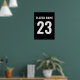 Une affiche audacieuse inspirée des maillots de sport présentant un nom de joueur et un numéro personnalisables en typographie blanche sur un fond noir uni. Ce design de monogramme polyvalent convient à tout sport et constitue un cadeau frappant pour les joueurs de football, basket-ball, baseball, football ou crosse. Parfait pour une chambre d'adolescent, une salle de vestiaire ou un espace d'athlète. Tout le texte est entièrement personnalisable.