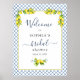 Thème Citron style Amalfi fête de fiançailles Bienvenue enseigne parfait pour le printemps ou l'été mariage. Conception comprend élégants citrons aquarelle avec bordure de carreaux bleus et blancs. Doublure d'enveloppe assortie disponible. (collection de mariage de citron vintage) Veuillez m'envoyer un message si vous avez besoin d'autres articles assortis.