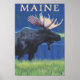 Maine - Moose in the Moonlight - LP Poster original - a été créé en 2008. Cette image représente des scènes du Maine.