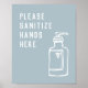Affiche Mains minimalistes bleues Sanitize ici
