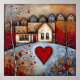 Une simple représentation d'une petite maison de campagne au milieu d'une ville rurale. Une partie de la collection de coeurs du pays, remplie d'un mélange de teintes d'automne et d'hiver.