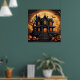 Maison hantée avec citrouilles d'halloween et chauves-souris sous pleine lune, Happy Halloween