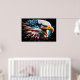 Aigle majestueux arborant le drapeau américain sur sa tête, symbolisant force, liberté et fierté.