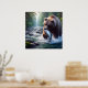 un grand ours est représenté dans une oeuvre d'art peinte, tenant fermement dans sa bouche un poisson frais. La présence puissante des ours et les instincts naturels de chasse sont décrits de manière frappante dans l'oeuvre.