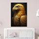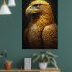 Majestic golden eagle portrait showing a detailed close-up of feathers, sharp beak and intense eye. Dramatic lighting emphasizes texture, strength and nobility for wildlife, conservation and emblematic design uses.