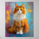 A regal digital painting of a Maine Coon cat with a luxurious orange and white coat, seated proudly against a vibrant abstract background. Known for their majestic fur and intelligent gaze, Maine Coons are gentle giants—and this artwork captures their elegance and charm. Perfect for cat lovers, collectors, and anyone seeking bold, expressive wall art.