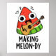 Making Melon-dy Funny Melon Pun features a cute slice of watermelon playing guitar and making melody . Perfect Puns gift for family and friends who love cute melon puns.