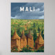 Mali conception de voyage rétro vectoriel. Le Mali est une nation ouest-africaine enclavée connue pour ses empires historiques, ses paysages désertiques et ses traditions culturelles profondément enracinées. De l'héritage savant de Tombouctou aux falaises dramatiques du Pays Dogon, il mélange l'histoire ancienne avec une vie locale vibrante.
